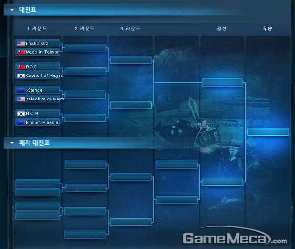 글: 게임메카 듀벳 오는 10월 10일부터 개최되는 블리즈컨 2008의 월드 오브 워크래프트 아레나 토너먼트 대진표가 공개되었습니다! 세계의 쟁쟁한 투기장 유저들이 실력을 겨루는 이번 대회에는 국내의 유명 팀인 Council of Mages팀(2008 블리자드 WWI 1위 및 2008 대한민국 월드 오브 워크래프트 결승전 2위)과 HON팀(2008 대한민국 월드 오브 워크래프트 결승전 1위)이 출전하는데요, 어떤 나라의 어느 팀과 맞서게 되는지 그 대진표와 팀 정보를 정리해 보았습니다.
