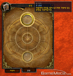 [주문각인 설정창의 초기 화면( 左)과 각인을 시도하여 변화된 모습(右)]