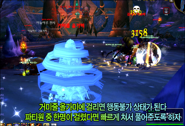 시전하는데, 이것에 걸리면 행동불가 상태가 되므로 딜러가 빠르게 쳐서