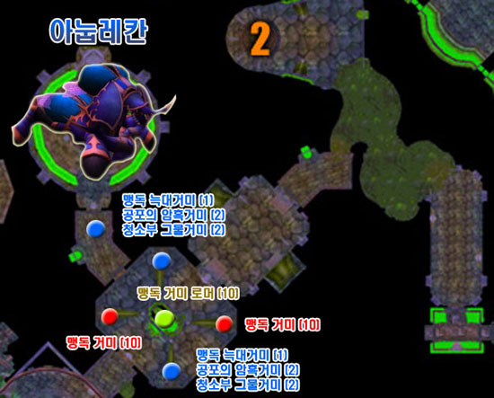 ※ 10인 일반 난이도는 처음 지하마귀 수호병 2마리 없이 아눕레칸 혼자 있다. 나머지 동일.
