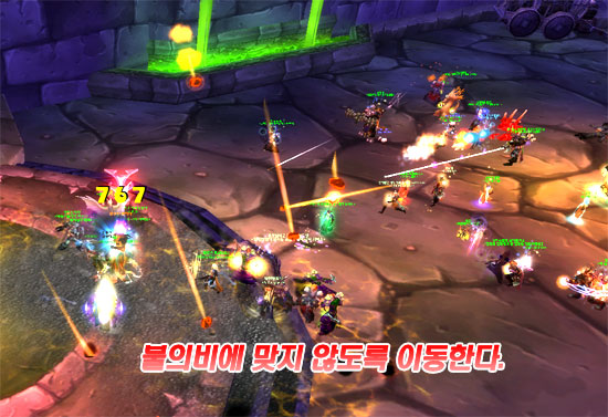 랜덤으로 공대원 주변 반경 8m 이내에 매 2초마다 3700-4300 데미지가 들어오는 불의비를 시전한다.