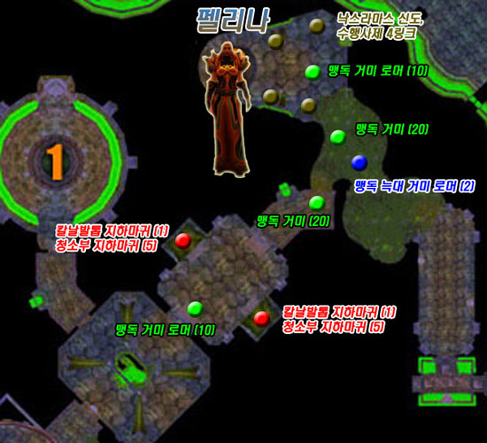 (5) 정신지배 담당 사제: 영웅(25인) 던전 펠리나의 광기 해제의 핵심은 사제이다. 4명의 숭배자 중 한명을 정신지배하면 `귀부인의 은총`이라는 스킬을 볼 수 있다. 펠리나 광기 상태 10초 전에 숭배자 한명을 미리 지배해 펠리나 근처로 이동한다. 그리고 펠리나가 광기를 하면 `귀부인의 은총` 스킬로 숭배자를 희생하면서 광기를 없앨 수 있다.