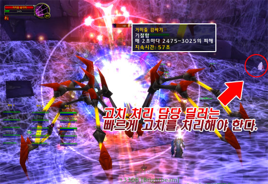 (2) 서브 탱커: 사제가 정신지배 후 빠르게 광기를 해제 할 수 있도록 메인탱커 근처로 이동한다. 숭배자 4명을 모두 탱킹하기 때문에 혹시나 하는 급사에 대비한다.