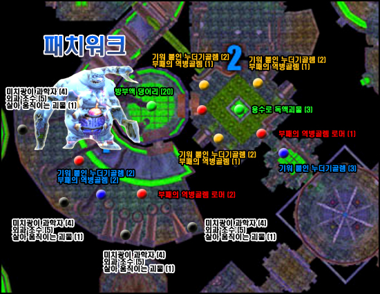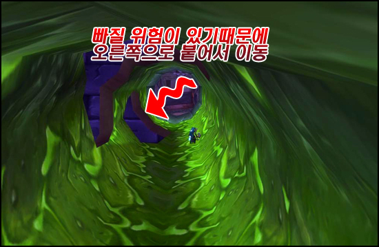 중간에 물 흐르는 듯한 독액괴물을 만나게 된다. 이 독액괴물은 잡을 수 없고 피해가야 하는데 피하지 못하고 부딪칠 경우 약 25,000의 피해를 입는다. 탱커를 제외한 다른 클래스는 무조건 사망이다. 성기사의 무적으로 처리가 가능하지만 곧바로 다시 나타난다.