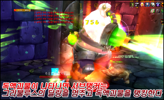독액괴물이 나타나면 그라불루의 딜링을 멈추고 독액괴물을 탱킹한다. 이때 본진과 너무 가까이서 탱킹하면 모두 독의 피해를 입기 때문에 간격을 벌리고 탱킹해야 한다. 돌연변이 유발이 걸리면 탱킹을 멈추고 메인탱커가 지나온 독구름 사이나 좀 옆으로 이동해 터뜨리고 다시 탱킹을 한다.
