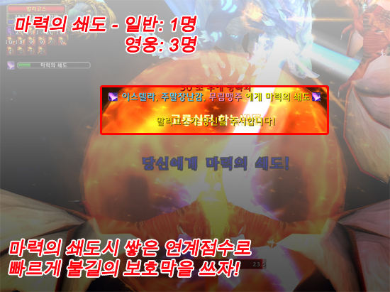 공격대 임의대상 3명에게 마력의 쇄도를 사용한다.