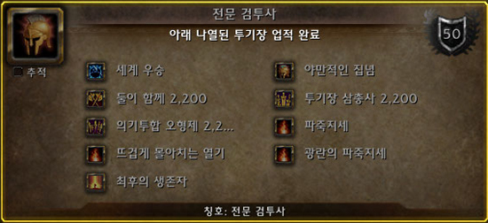 와우를 우리는 다른 말로 월드 오브 평판크래프트라고 한다. 올릴 평판이 많아 월드 오브 평판크래프트라는 말을 하는데 그것을 무색하게 할정도로 유행하는게 있다면 그건 바로 월드 오브 업적크래프트이다. 745개나 되는 업적을 위해 던전, 투기장, 전장을 간다. 업적들중에는 하기가 어렵고 복잡하여 달성하면 특별한 보상이 주어지는 업적들도 있다. 칭호, 탈것, 휘장 등의 다양한 보상이 있는데 이러한 보상을 받을수 있는 업적들을 정리해 보았다. 남들과 다른 나만의 칭호와 탈것을 원한다면 찾아서 도전해보길 바란다.