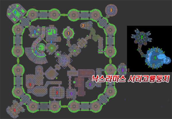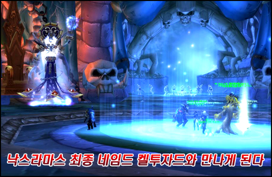 거미, 역병, 피조물, 군사 4개의 지구를 모두 클리어하면 낙스라마스 시작 지점 위쪽의 파란 포털이 활성화 되며 최종 네임드인 사피론과 켈투자드를 공략할 수 있는 방으로 진입할 수 있게 된다.