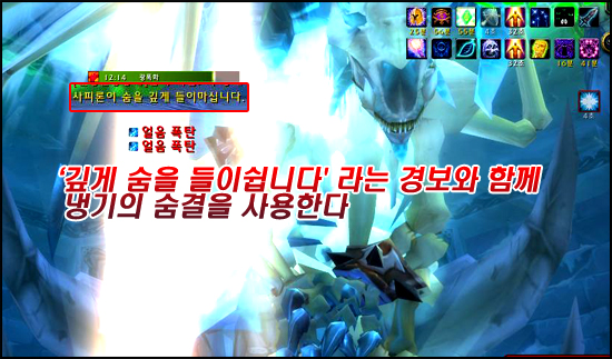 2페이즈 공략의 핵심은 사피론의 냉기의 숨결을 피하는것이다.