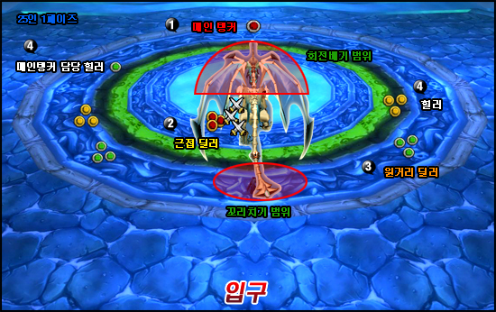 힐러2-3(메인탱커 담당1-2, 공대원 담당1)