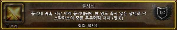[와우> 특집기사> 가이드] 월드 오브 업적크래프트라는 말이 있듯 와우에서는 749개나 되는 업적들이 있습니다. 수많은 업적들 중 달성하게 되면 다른 이들에게 부러움과 질투의 시선을 느끼게 하는 업적들이 있죠. 서버에서도 수많은 사람들이 도전하지만 극소수만이 성공하여 보상아이템을 받고 마음껏 자랑을 하기도 하합니다. 그 대표적인 보상이 `역병 걸린 원시비룡` 과 `검은색 원시비룡`이라 할 수 있겠죠. 하지만 울두아르가 등장하는 3.1패치가 적용되고 나면 업적을 달성해도 두 비룡을 획득할 수 없게 됩니다. 시간이 너무 촉박하다구요? 아직 늦지 않았습니다. 지금부터라도 충실히 업적을 수행해 간다면 원시비룡은 여러분의 손아귀에 들어올 겁니다. 그럼 공격대 업적을 달성하기 위한 간단한 노하우들을 살펴보시죠.
