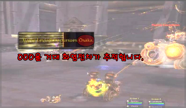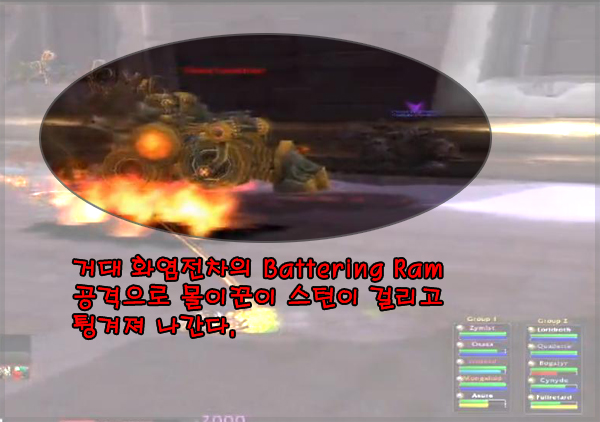 거대 화염전차의 공격 범위가 나오도록 몰이를 하면서 도망쳐야 합니다. 또한 Battering Ram
