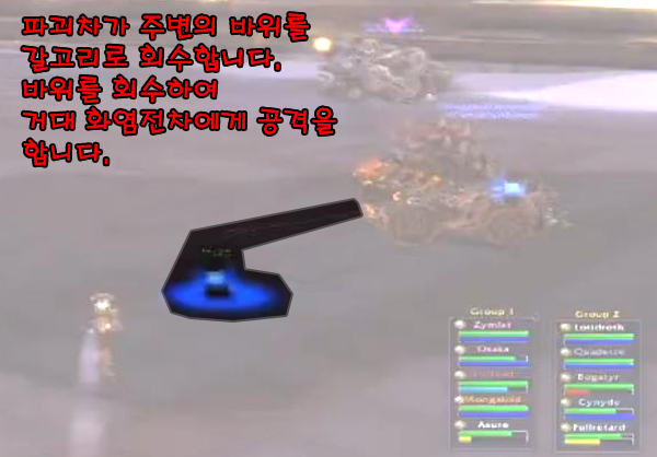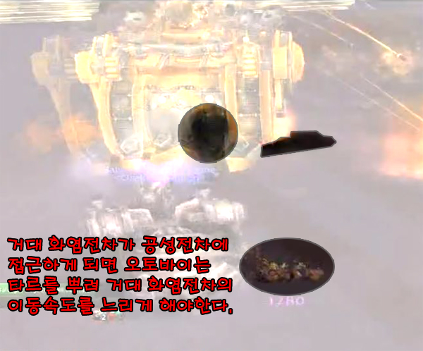 기본 패턴 거대 화염전차 주변에는 4개의 작은