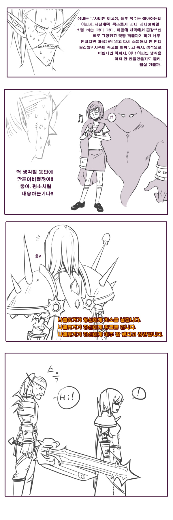 과거에도 여자 타우렌을 예쁘게 그려 올려주셨던 건실청년님이 이번에도 타우렌도 예쁠 수 있다는 것을 몸소 보여주셨습니다. 이 작품을 보면서 타우렌도 예쁘다고 생각했는데요. 다음에는 어여쁜 여자 드워프도 부탁하고 싶네요.