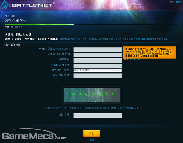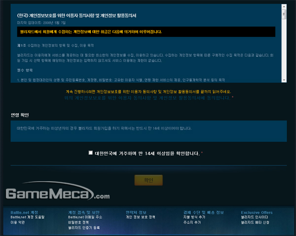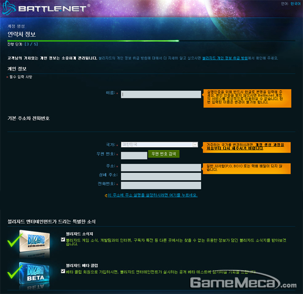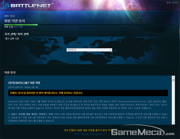 우선은 배틀넷에 계정을 등록해야 합니다. 이미 등록하신 분이라면 당연히 등록할 필요는 없겠죠? ※만약 페이지가 영문으로 표시된다면 우측 상단에서 언어 설정을 [한국어]로 선택하시기 바랍니다. 아직은 페이지가 안정화되지 않아서인지 한국어 페이지는 속도가 상당히 느린 편입니다.