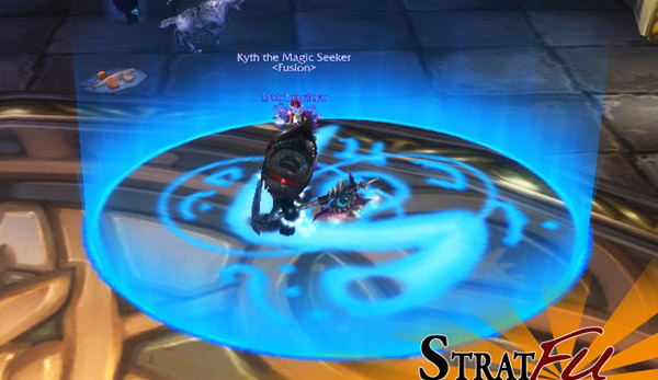무쇠 평의회 중 한 명의 발 밑에 힘의 룬을 소환합니다. 룬 위에 선