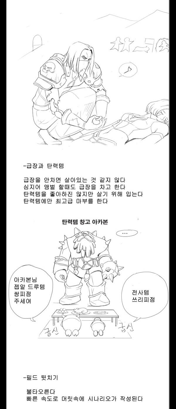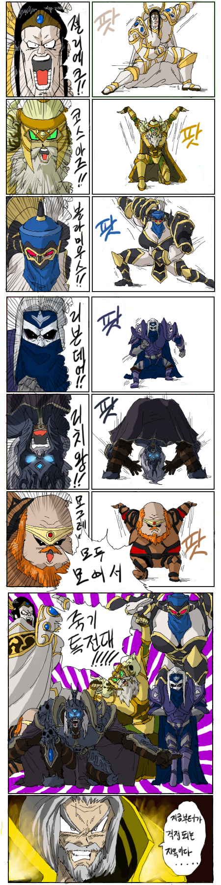 현우밤님의 죽기특전대 작품은 보면 볼수록 웃음이 절로 나오는데요. 낙스라마스의 4인 기사단에서 이 장면이 생각나 공격대를 위험하게 만들 것 같습니다. 추억의 만화 드래곤볼에 나오는 기뉴특전대를 패러디한 `죽기특전대`가 4월 첫 이미지 갤러리 베스트5의 1위를 차지하였습니다.