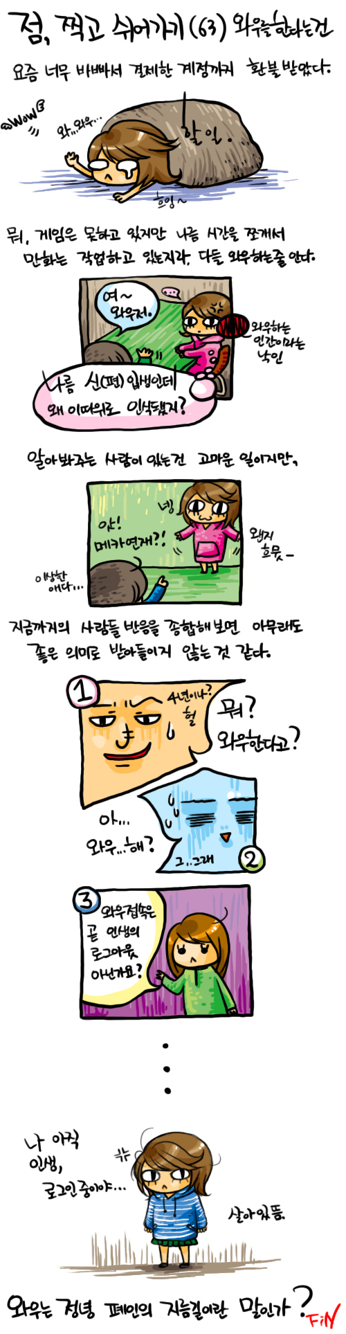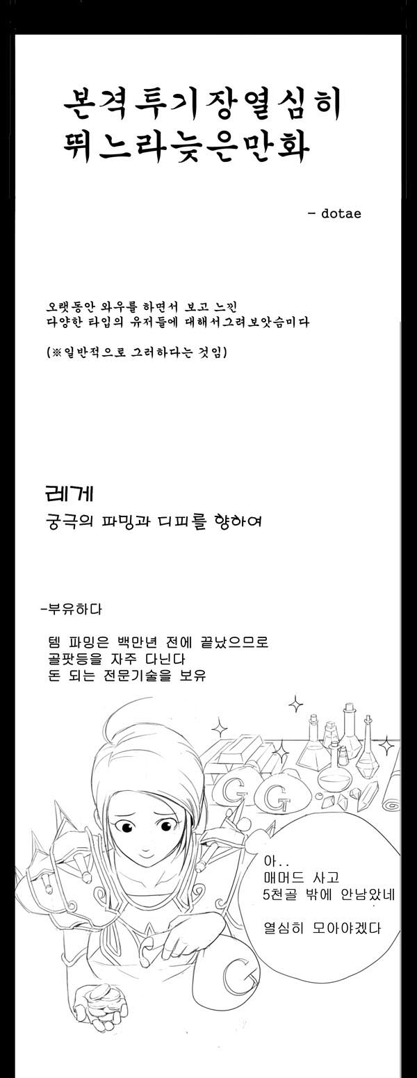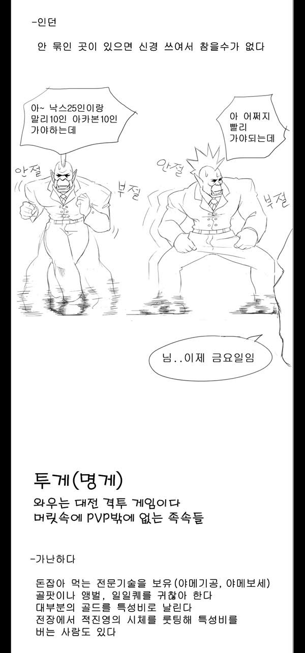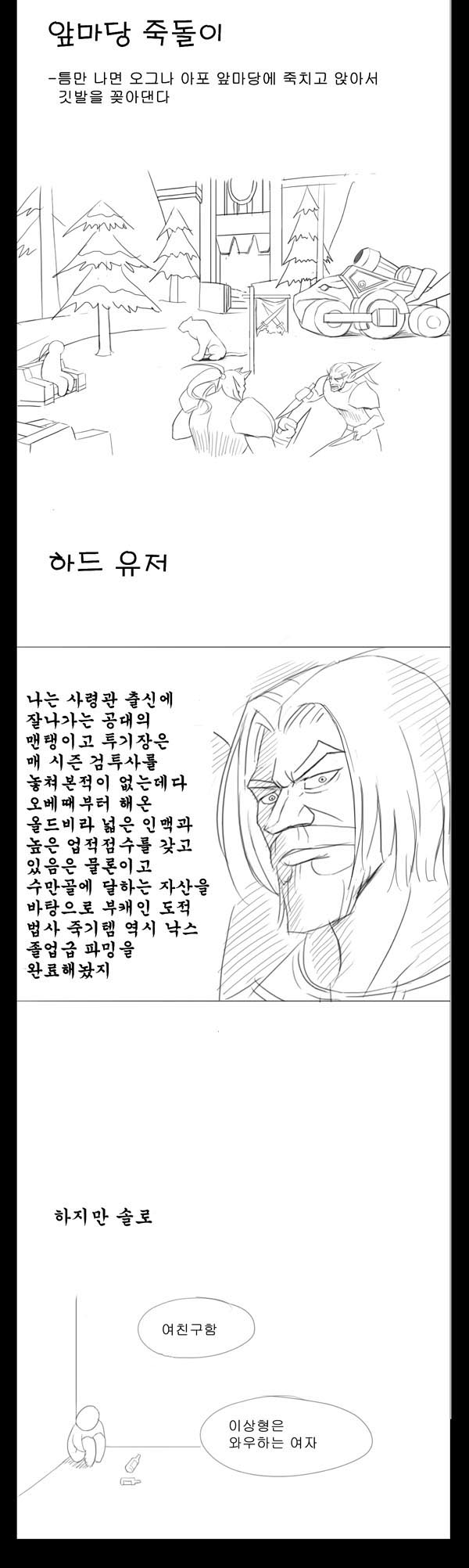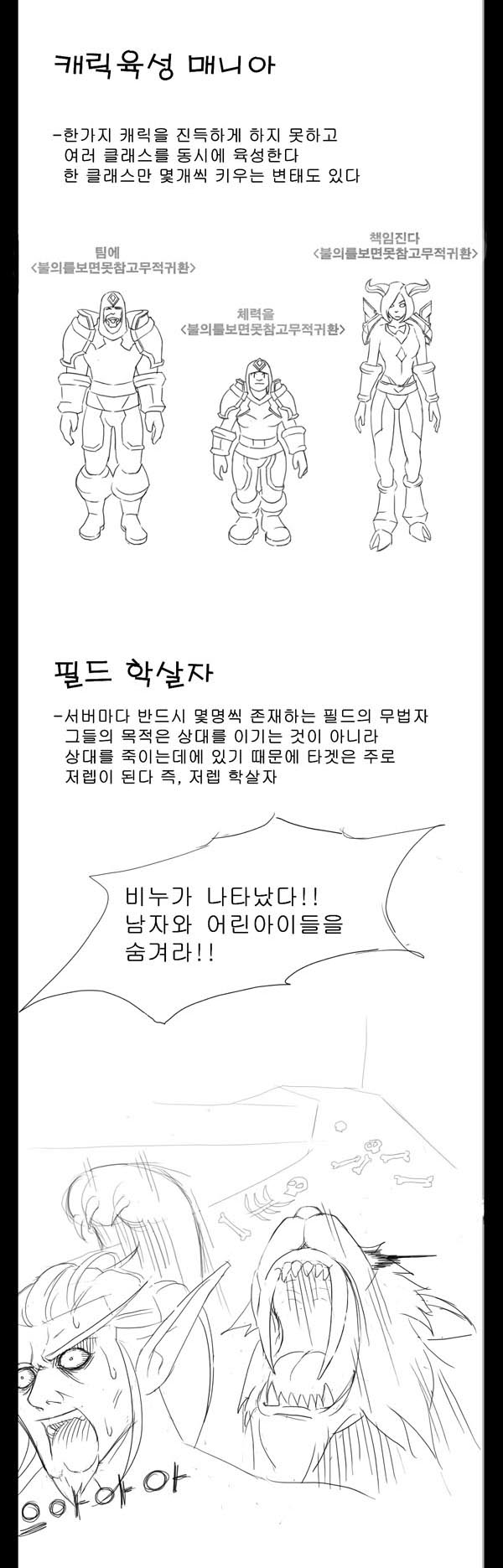와우에서 볼 수 있는 유저의 모습을 세분화하여 작품으로 만들어주셨습니다. 캐릭육성매니아로써 제 모습을 dotae님의 작품으로 확인할 때 등골이 서늘함을 느꼈는데요. 마지막 컷 솔로에서 dotae님과의 동병상련을 느낄수 있었습니다. 와우유저의 모든 모습을 볼수 있는 dotae님의 작품이 3위입니다.