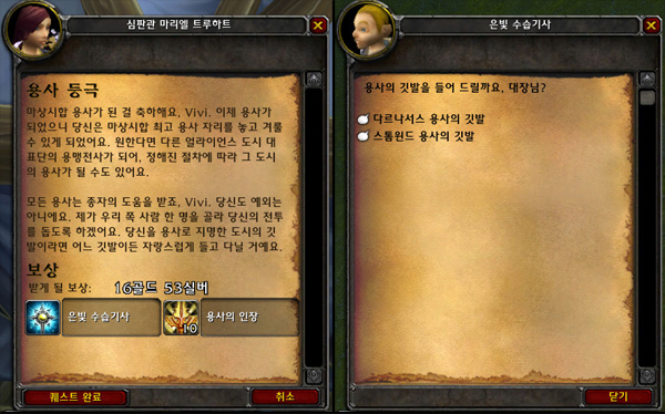 자격을 획득했을 때 주어집니다. 얼라이언스는 수습기사를, 호드는 꼬마