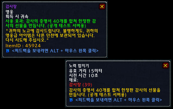 것이 아닐까요? 감사장의 툴팁에 "테스트 서버에서만 가능"이라고