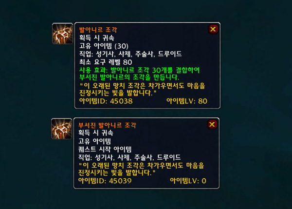 파편을 30개 모으면 서로 합쳐서 [부서진 발아니르 조각]을 만들 수