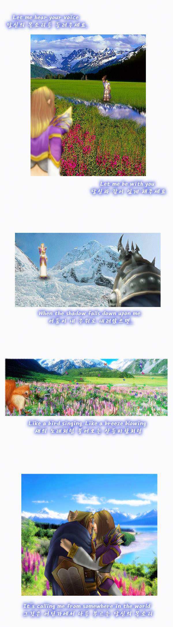 와우판 로미오와 줄리엣이라고 할까요? 아서스 왕자와 제이나의 사랑 이야기가 눈물샘을 자극합니다. 해피엔딩으로 끝나는 `이 세상.....어딘가에서` 작품의 마지막을 보면서 와우에서도 아서스 왕자와 제이나가 같이 있는 모습을 상상하게 되었네요. Somewhere BGM과 어우러지는 `이 세상.....어딘가에서` 감상해 보시길 바랍니다. 이번 주 1위입니다.