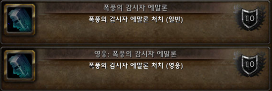 폭풍의 감시자 에말론은 바위 감시자 아카본과 마찬가지로 일반에서 2개, 영웅에서 4개의 아이템을 드랍하며 티어 8 세트 아이템과 투기장 시즌 6 아이템을 드랍합니다.