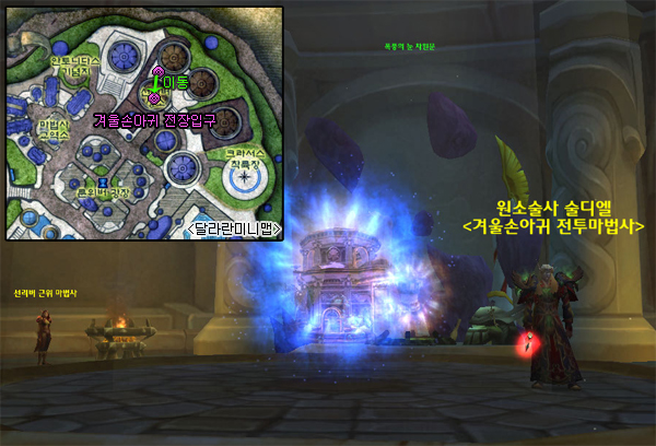 호드진영의 겨울울손아귀 호수로 가는 차원문의 위치가 변경되었습니다. 기존에는 방과 방의 통로에 위치하였으나 아래 널찍한 방으로 이사를 하였습니다. 얼라이언스진영은 기존과 같은 위치입니다.