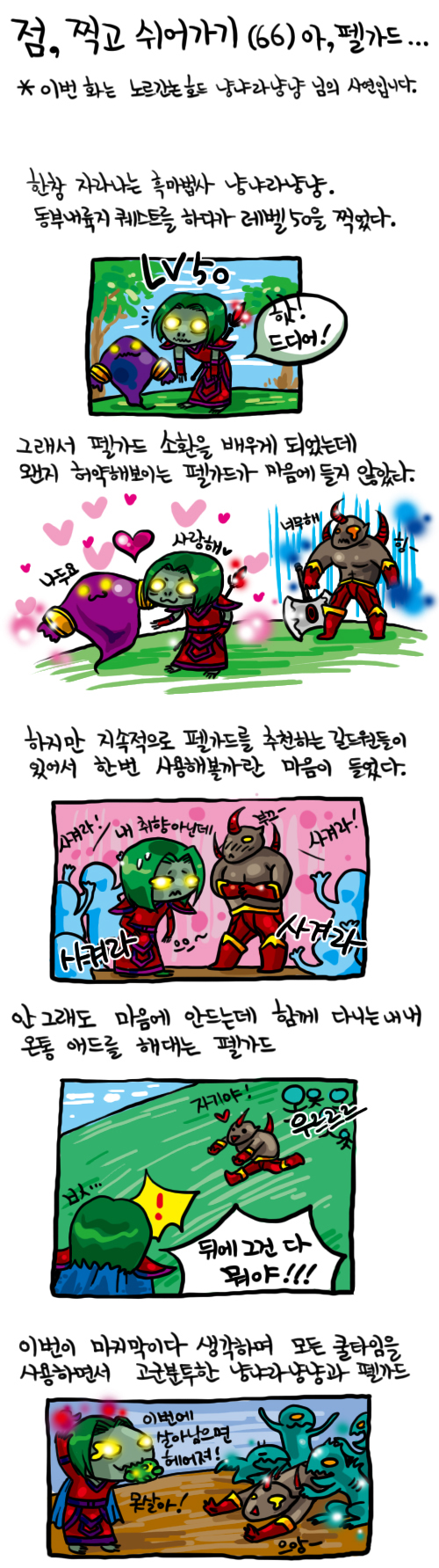 "이미지 갤러리 베스트5" 순위와는 관계없이 매주 와우 카툰을 연재해주시는 NAG 님의 작품입니다. 요즘 NAG님 카툰을 보고 펠가드를 소환하고 싶어 흑마법사를 키우고 있답니다. ^^