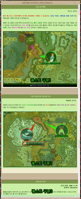 메카리포트> 가이드] 안녕하세요, 게임메카 CM 블루오빠입니다. 지난 몇 년간 여러분에게 큰 사랑을 받았던 와우메카 [퀘스트 페이지]가 새로운 모습으로 개편 되었습니다. 인터페이스와 디자인이 기존과 완전히 다르기 때문에 처음에는 익숙지 않으시겠지만, 편리성은 물론 기능성까지 충분히 고려하여 제작되었으므로 와우메카 식구 분들이라면 금방 적응할 수 있으리라 생각됩니다. 자 그럼, 꽃 단장을 마친 퀘스트 페이지를 여러분께 소개해 드리도록 하겠습니다. 뜨거운 박수를...(-_-;)
