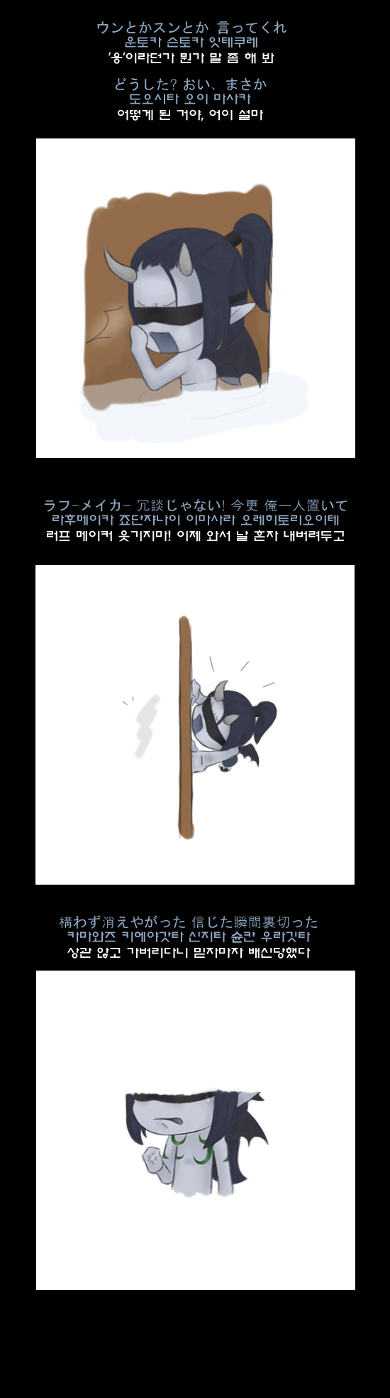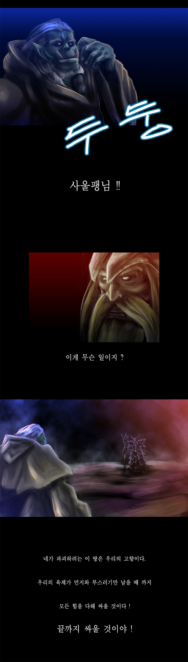 울두아르의 보스몬스터 중 하나인 콜로간을 주제로 하여 코믹하게 그려주셨습니다. 수염의 미덕을 아는 콜로간의 팔이 골절되는 모습은 한바탕 웃음 짓게 하네요. 큰 웃음과 함께 2위를 차지했습니다.