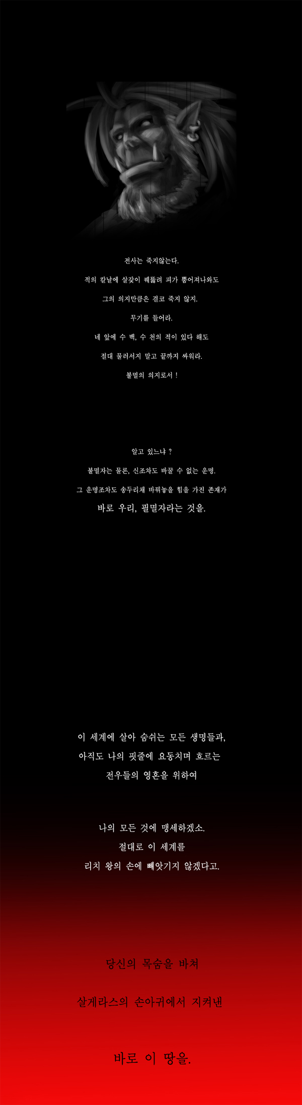 "오늘, 우리가 죽는 것은 우리의 부모, 자식 그리고 사랑하는 이를 위한 것이다. 이렇게 영광스러운 죽음을 거부할 자 어디 있느냐? 이 얼마나 영광스러운가? 전진! 안퀴라즈를 향하여! 저기 우리의 운명이 기다리고 있다. 칼림도어 연합군의 힘을 보여줘라!!" 실리더스에 있는 안퀴라즈 사원을 기억하시나요? 안퀴라즈 전쟁에서 가장 앞쪽에서 지휘한 싸울팽은 와우 최고의 영웅 중 한 명입니다. 싸울팽의 이야기를 다룬 형제에게 작품이 이번 주 1위에 올랐습니다.