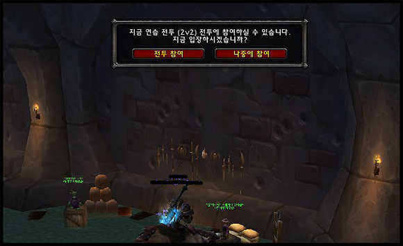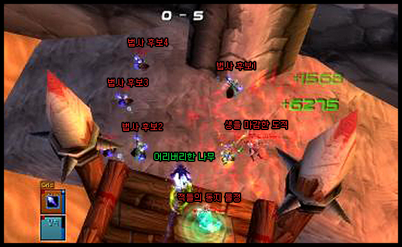 벽이 올라가자마자 보이는 것은 말에 타고 있는 법사! 난 은신하고 있는 상태였지만 올라가자마자 상대편 법사가 시전한 얼음회오리에 걸려 모습을 드러내고 말았다. 상대는 법사와 성기사였다. 마나가 적은걸로 봐선 징기가 확실하군. 법사님은 바로 맹공격을 퍼붓기 시작했고 나는 마치 패치워크에서 맨탱 힐 넣듯이 폭힐을 넣었다.