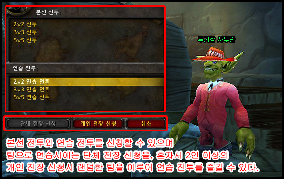 신청하고 싶다면 투기장 사무관에게 말을 걸면 된다.