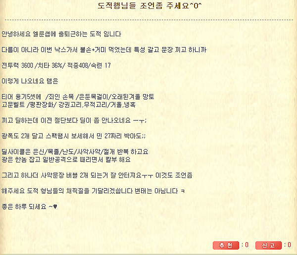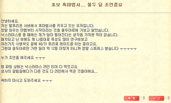 구간에서 딜이 안나온다면 속상하죠. 그래서 인지 직업 게시판에는 이런