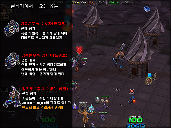 포인트는 바로 1페이즈의 암흑룬부족 몬스터들입니다. 한꺼번에 5~6마리씩
