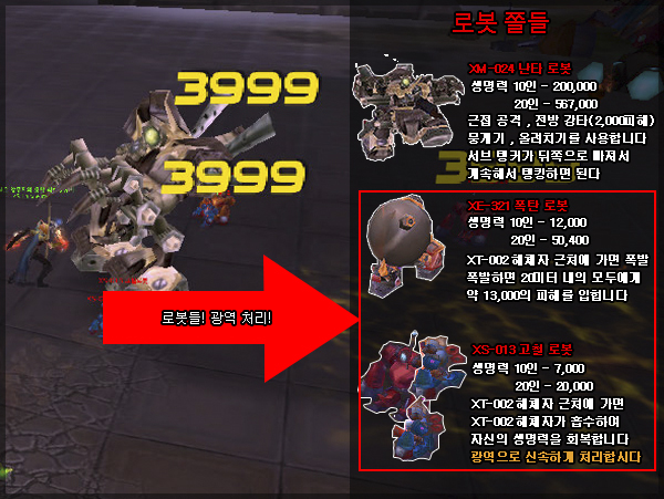딜하는 것입니다. 한꺼번에 많은 수가 나오는 로봇들에게 광역 스킬을