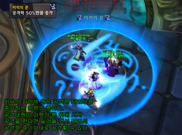 평의회에서 포인트는 딱 한가지, 마력의 룬(파란색 바닥)을 밟아라!