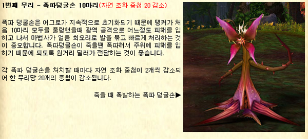 광역 스킬을 마냥 사용하여 한꺼번에 죽게해서는 안됩니다. 폭파덩굴손은