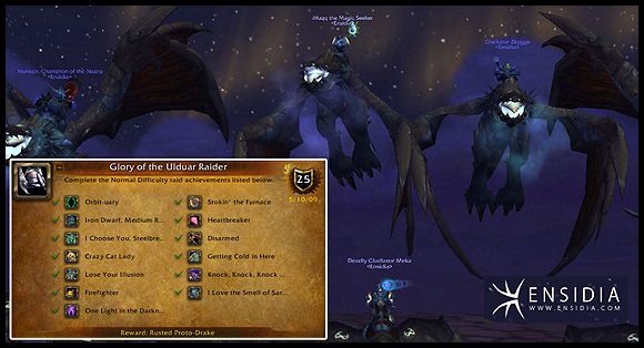 울두아르의 하드모드들이 속속 클리어되고 있다는 소식을 저번주에 들려드렸었죠? 이번주에는 더욱 특별한 울두아르 10인의 영예의 공격대원 업적이 정복되었다는 소식입니다. 많은 유저들이 울두아르 네임드가 아니라 엔시디아의 너프(?)를 외치고 있는 가운데, 이제는 세계 최초로 이들이 이루어낸게 몇 개인지 셀 수조차 힘들다고 할 수 있겠습니다. 낙스라마스때와 마찬가지로 그들은 이제 탈 것 목록에 특별한 용 한마리를 더 추가하게 되었습니다.