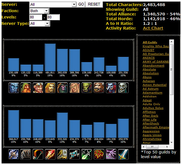 `트롤은 가슴이 시킨다` 거나 `완소 드r 여케` 등 종종 소외받는 몇몇 종족들에게는 별명들이 붙어있습니다. 그만큼 와우를 사랑하는 유저들이라면 종족의 능력뿐만 아니라 외모나 그들의 희귀성에도 관심이 많겠죠? 또한 흔히 우리가 늘 말하곤 하는 `죽도법풀` 이나, `완소 탱님, 당신만 오면 출발! 9/10` 이런 파티창 광고에 익숙한 나머지 `딜러는 곧 천민`, `힐러와 탱은 귀족` 이라는 웃지 못할 선입견마저 생겼습니다. 우리나라가 아닌 해외에서는 어떨까요? 유럽과 북미의 종족 비율과 직업 비율을 조사한 흥미로운 자료가 여기 있습니다.