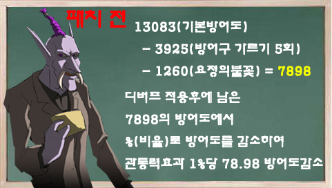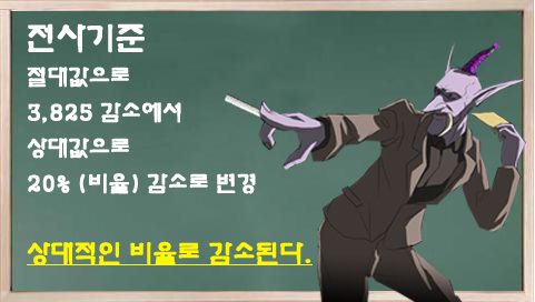 이유는 간단합니다. 절대값으로 이루어졌던 방어구 감소가 상대값으로 변함으로 방어도가 상대적으로 낮은 천계열 직업군에게 물리 피해 감소효과를 받을 수 있는 방어도가 생긴 겁니다. 기존에는 쉽게 0이 되버렸는데 말입니다. 천계열 직업군에게는 상향이겠지만 방어도 감소 기술을 가진 직업군에게는 아쉽게도 하향인 셈이 되겠네요.