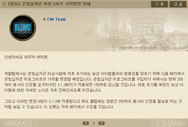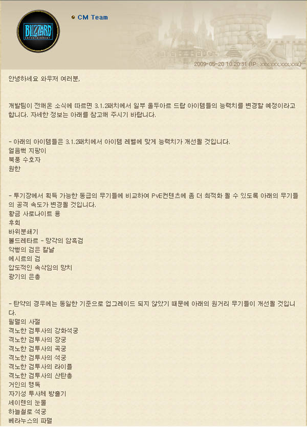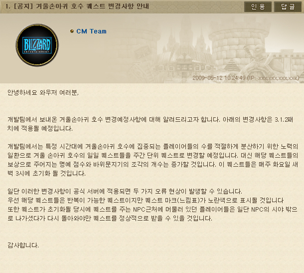 5월 12일 블리자드 코리아에서 공식적으로 발표하였던 내용입니다. 겨울손아귀