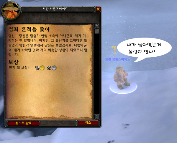 브론즈비어드 일족 이야기 중에서 가장 알려지지 않은 인물이 브란 브론즈비어드입니다. 브란의 행적에 대해서 처음 접하게 되는 곳은 아제로스의 실리더스지역이죠. 안퀴라즈 사원의 고대신 쑨이 등장하면서 브란에 대한 이야기가 와우상에 처음 등장하게 됩니다.