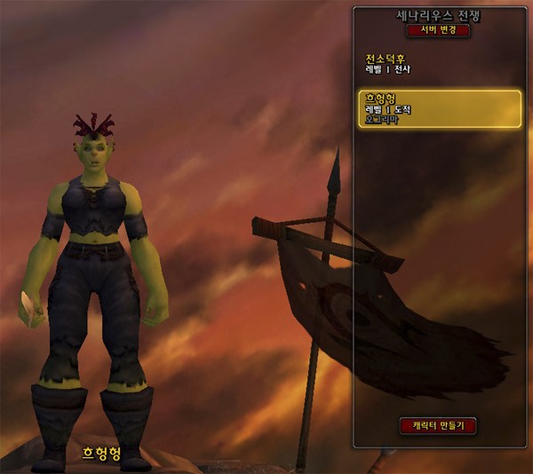 오크 여자 도적 캐릭터로 오그리마에서 진행됐습니다. 캐릭터의 이름은 흐헝헝