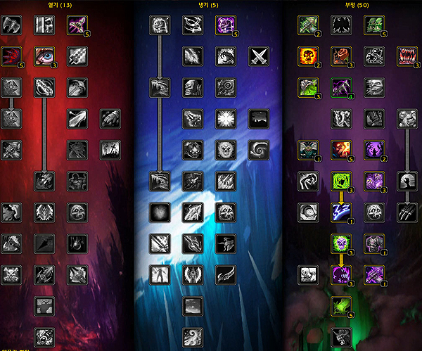 갖추지 못한 유저에게 좋은 특성으로 `영혼 거두기` 특성을 제외한 트리입니다.