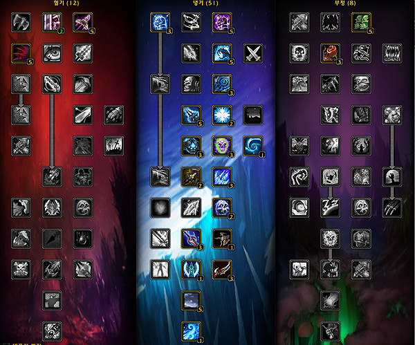 `주냉부혈`이라 불리고 있는 냉기 쌍수 트리입니다. 이 특성은 캐릭터의