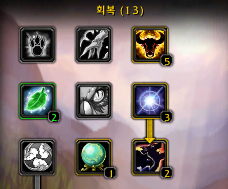 드루이드가 탱커에게 힐을 할 때에는 `재생`과 `회복`, `피어나는 생명`(3중첩)을