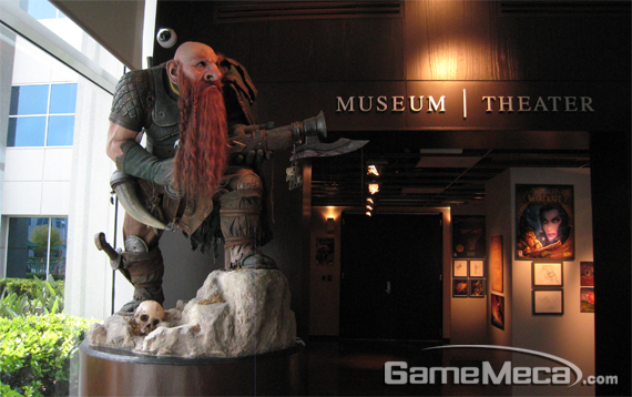 하지만 막상 블리자드 사옥에 들어가니 `아! 내가 블리자드 회사에 들어왔구나~` 라는 것을 여실히 느낄 수 있었다. 입구 양 옆에 배치된 `스타크래프트 고스트`와 `드워프` 동상 그리고 현재 가장 잘나가는 온라인 게임의 최강 캐릭터 리치왕의 애검 `서리한`까지! 시작부터 게이머의 혼을 자극하는 물품들이 나열되어 있었다.