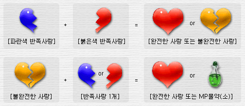 반쪽 하트는 그대로 사용할 경우 HP 또는 MP를 25% 회복 시켜주는 능력이 있으며 완전한 하트로 조합 후 사용할 경우 HP와 MP를 모두 회복시켜주는 능력을 가지게 된다. 또한 완전한 하트를 가장 많이 만든 게이머에게는 자신이 직접 이름 지을 수 있는 ‘사랑의 팬던트 아이템’을 받을 수 있다.